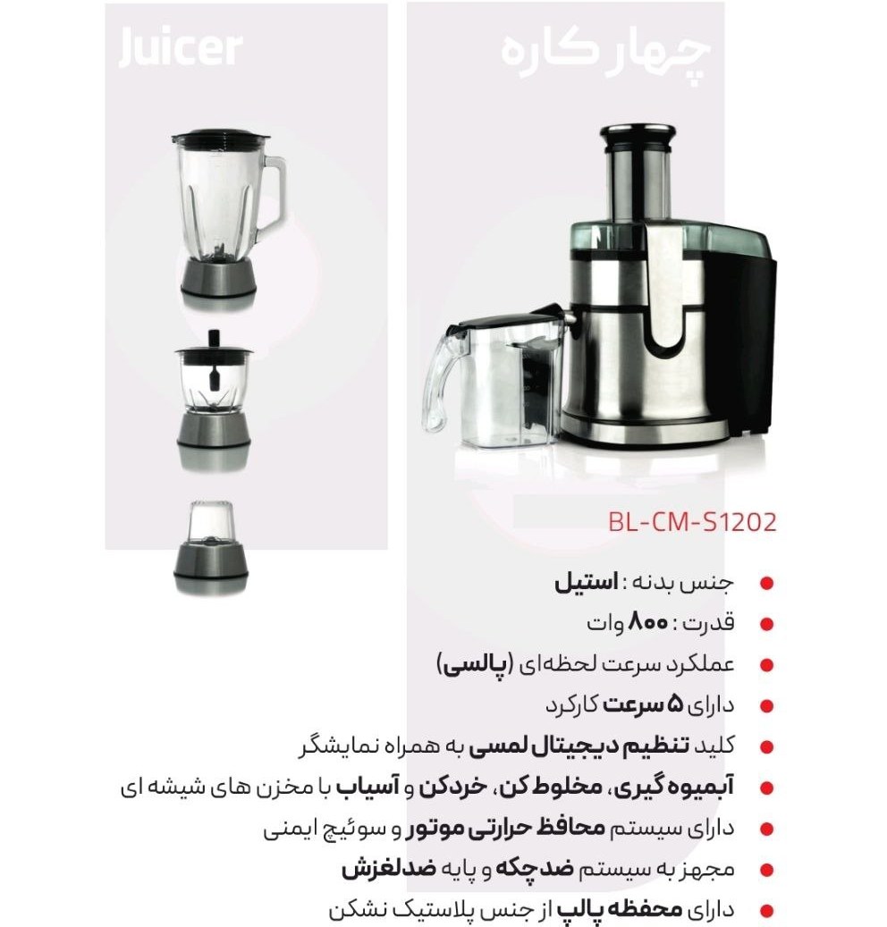 آبمیوه گیری چهارکاره (آبمیوه گیری - مخلوط کن - آسیاب - خرد کن)