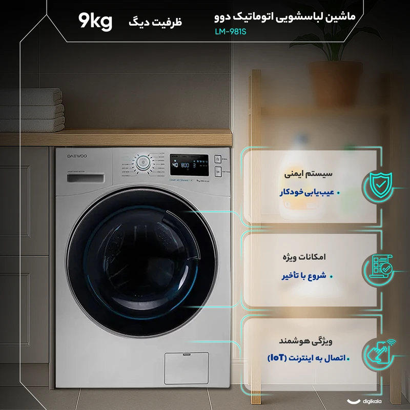 ماشین لباسشویی 9 کیلوگرم اتوماتیک دوو مدل LM-981